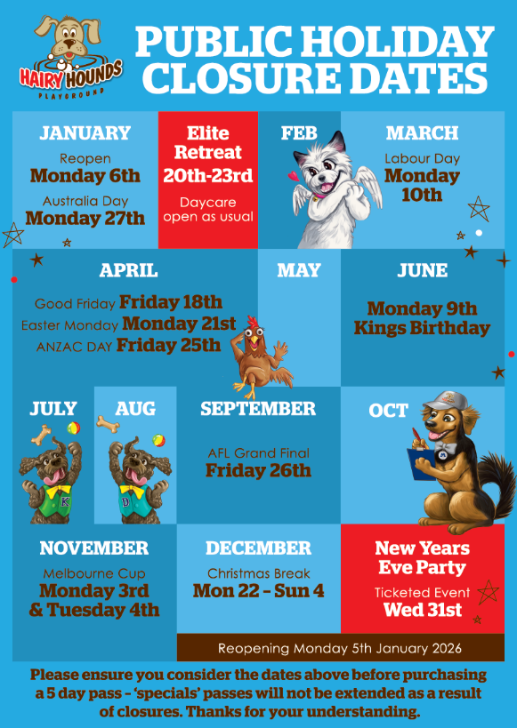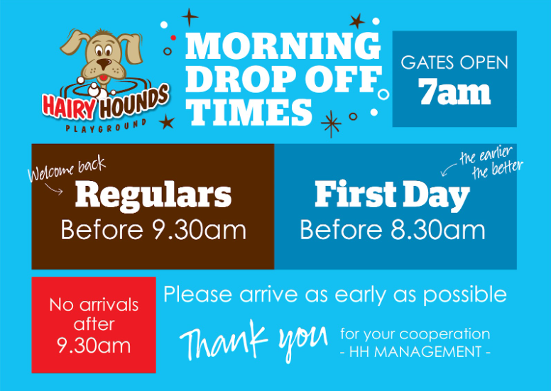 We can’t wait to welcome your furry friend! To ensure a smooth first day, please book via email at info@hairyhounds.com.au or call us at 9397 3044. Our friendly team will be ready to help your pup settle in and enjoy their day of fun, training, and socialization.