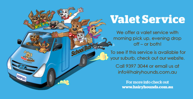 Where possible, our school bus will collect and deliver your fur-kid. Occasionally, a carer may use their own car. Please provide your dog’s car harness for safety, and ensure they are toileted before collection to avoid soiling in the vehicle.
